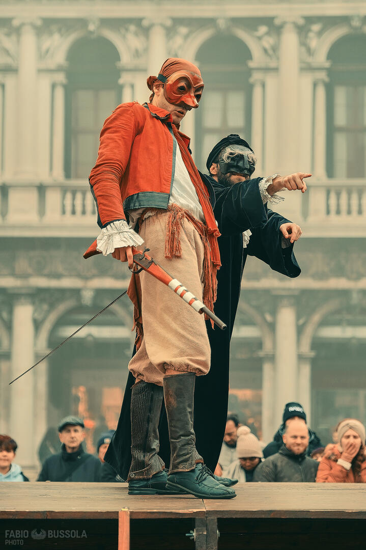 L’utilisation des masques, des coups de théâtre à répétition, lazzi, danses, chants et pantomimes caractérisent cet opéra théâtral qui se lie à la plus pure tradition de la Commedia dell’Arte.